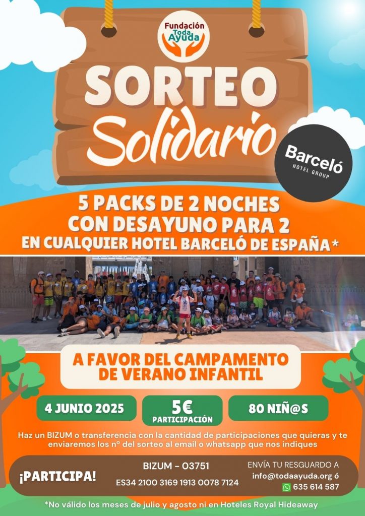 Pero esta no es solo una oportunidad para ti, ¡es una oportunidad para muchos niños! El 100% de lo recaudado con este sorteo se destinará a la realización del Campamento de Verano Nazaret 2025, donde 80 niños y niñas en riesgo de exclusión social del barrio de San Blas y menores tutelados por Residencias Infantiles de la Comunidad de Madrid disfrutarán de un verano lleno de alegría y experiencias enriquecedoras.